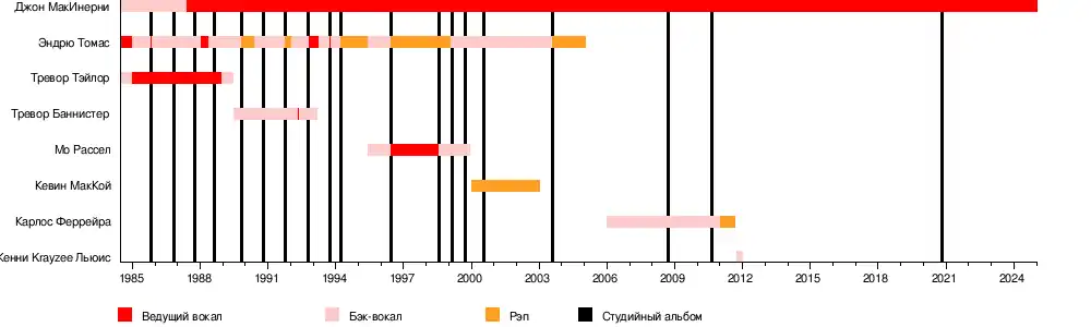 В 1987 году во время записи сингла Come Back And Stay[6] продюсеры приняли решение сменить ведущего вокалиста на Джона МакИнерни[7]. Это была первая композиция, в которой большую часть исполняли Джон и Лиан Ли. С этих пор своеобразный вокал Джона стал визитной карточкой группы. Перемены привели к проблемам внутри группы, вследствие чего в 1989 году Тревор Тэйлор оставил коллектив, чтобы заняться сольной карьерой (музыкант скончался от инфаркта 19 января 2008 года в Кёльне). Замену ему нашли в лице Тревора Баннистера (род. 5 августа 1965, Грембсби, Англия).