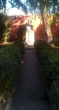 Бюст, установленный в дворике Домика Чехова, слева от главной аллеи, изготовлен из тонированного гипса. Высота бюста — 104 см. Постамент выполнен из оштукатуренного кирпича, его высота также равна 104 см.