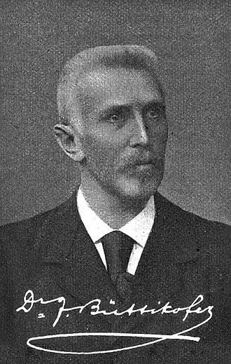 Исследователь, описавший ряд зоологических таксонов. Названия этих таксонов (для указания авторства) сопровождают обозначением «Büttikofer». |