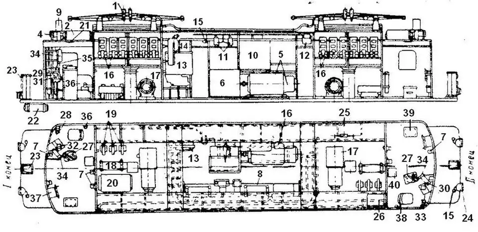 - ↑ Номер электровоза под сомнением, так как кузов собран на заклёпках, а не на сварке.