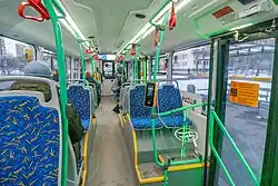 Для поддержания комфортной температуры салона и кабины водителя ТС комплектуются системой климат-контроля. Он вмещает в себя 107 человек, из них — 37 сидячих мест. Электробус имеет три двери для посадки и высадки пассажиров.