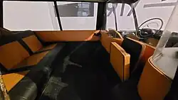 Автомобиль имел в правом борту одну очень широкую (740 мм) сдвижную дверь с дистанционным электроприводом, для входа же водителя служила отдельная левая дверь, распашного типа. Его сидение размещалось практически посередине автомобиля, с небольшим смещением влево, между арками передних колёс, что позволило обеспечить хорошие условия работы. Справа симметрично водительскому креслу располагался рулевой вал, закрытый консолью, на которую была вынесена часть органов управления. В целом, известный по сохранившемуся прототипу финальный вариант оформления салона (существенно отличавшийся от исходного) и по компоновке, и по дизайну (характерная «полоса» приборов и индикаторов на приборной панели) явно тяготел к итальянскому концепт-кару Ghia Selene I.