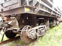 - ходовая часть: 2-, 3-, 4-осевые тележки, рама тележки с поперечной балкой и боковинами, колёсные пары с буксами на подшипниках, рессорные комплекты
