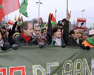 - ↑ Oproep Van Bommel tot intifada leidt tot boze reacties. DEN HAAG - SP-Kamerlid Harry van Bommel heeft zich boze reacties van zijn medeparlementariërs op de hals gehaald door op te roepen tot een nieuwe Palestijnse intifada. (нидерл.). nederlands dagblad (4 января 2009). — «Zaterdag liep Van Bommel naast de pro-Palestijnse activiste Gretta Duisenberg vooraan bij een anti-Israëldemonstratie in Amsterdam. Hij scandeerde daar de leus 'Intifada, Intifada, Palestina vrij' mee met de demonstranten.» Дата обращения: 18 февраля 2023. Архивировано 6 июля 2018 года.