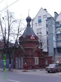 У ворот рубленного Большого острога по обычаю сооружались небольшие часовни. У дороги на Курмыш и Казань, входящей в город с востока, стояла деревянная Варварская часовня. Каменная часовня была построена в конце XIX века по инициативе Арзамасской Алексеевской общины в связи со спасением царской семьи во время крушения поезда в Борках 17 октября 1888 года, которое было расценено чудесным. Проект был создан нижегородским епархиальным архитектором А. К. Никитиным. Часовня представляет собой храм древнего шатрового типа с просторным одноапсидным алтарём, но без трапезной и колокольни. В оформлении использованы элементы древнерусской архитектуры: килевидные бочки, ширинки, штучный набор. Образа иконостаса были созданы иконописцами Общины. Освящение часовни состоялось 17 сентября 1892 года.