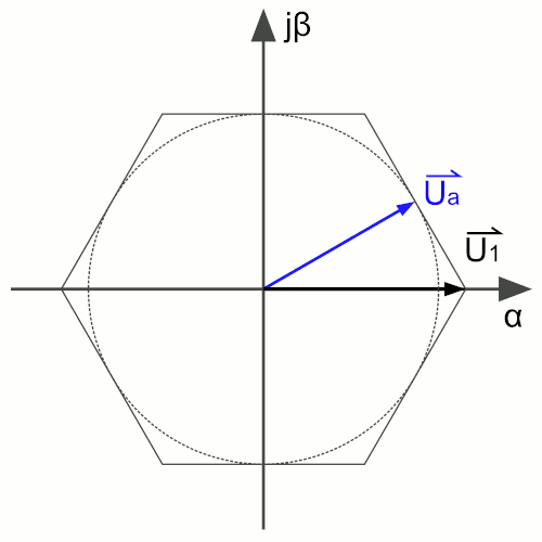 Базовые векторы для коммутации типичного трёхфазного моста при векторной ШИМ (см. рис. 1)