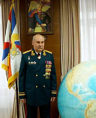 - ↑ Указ Президента Российской Федерации от 23.12.2010 № 1587 «Об освобождении от должности, назначении на должность и увольнении с военной службы военнослужащих Вооружённый сил Российской Федерации» — Сайт Президента Российской Федерации (недоступная ссылка)