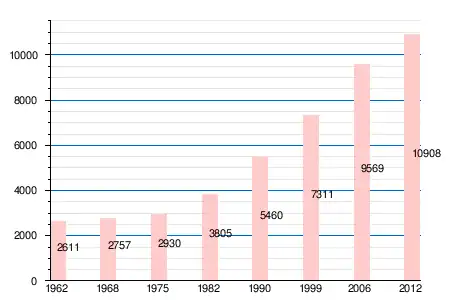 | 1962 | 1968 | 1975 | 1982 | 1990 | 1999 | 2005 | 2006 | 2010 | 2011 | 2012 |