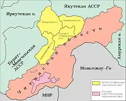 - из Восточно-Сибирского края южная оконечность Бодайбинского района, так называемый Каларский угол, и Витимо-Каренгский туземный район;