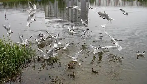 - некоторые ржанкообразные (Charadriiformes), например плавунчики, чайки и крачки