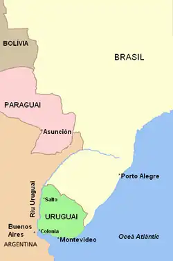 В 1822 году Бразилия стала независимым государством. В августе 1825 года Тридцать три Ориенталес подняли восстание в Сисплатине, что привело к аргентино-бразильской войне. В 1828 году в соответствии с договором в Монтевидео в южной части Восточной полосы было образовано независимое государство Уругвай.