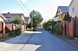 Первоначально указанный посёлок имел одноэтажную усадебную застройку, которая до настоящего времени не сохранилась. Сейчас на этом месте находятся несколько трёх- и четырёхэтажных многоквартирных домов, двух- и трёхэтажные дома коттеджного типа, а также одно крупное двухэтажное домовладение дворцового типа (ул. Строителей, 1). В основном эти здания были возведены в 2010-е годы.