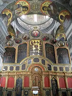 Все пять куполов церкви открыты внутрь помещения и имеют окна. Интерьер церкви имеет два мраморных мозаичных киота на южной и северной стенах.
