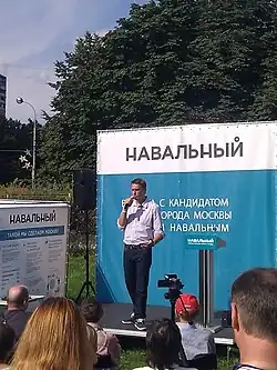 - ↑ Собянин закроется со сторонниками в «Олимпийском», Дегтярев устроит дискотеку на Поклонной горе, а Навальный — митинг-концерт на проспекте Сахарова Архивная копия от 5 сентября 2013 на Wayback Machine // Газета.ru, 2 сентября 2013