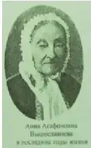 Анна Агафоновна Вышеславцева (1818, Нижний Новгород, Нижегородская губерния, Российская империя — 1895, там же) — русская театральная актриса .