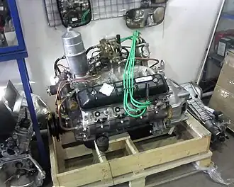 - V8, 4-тактный, карбюраторный, 4254 см³. Диаметр цилиндра/Ход поршня: 92/80 мм