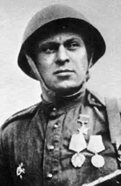 - ↑ На момент представления к званию Героя Советского Союза — сержант.