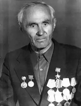 - ↑ Карточка награждённого к 40-летию Победы в электронном банке документов «Подвиг народа».