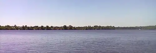 ![]() Южная оконечность острова Водников, слева виден выход из гавани, вид с левого берега Днепра со стороны дачного поселка Нижние Сады-2 | |