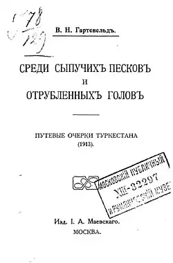 - 1 2 3 4 5 6 Гартевельд В.Н. Среди сыпучих песков и отрубленных голов. Путевые очерки Туркестана. — Salamandra P.V.V., 2014. — 128 с. — ISBN 5-94861-011-X.