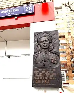 - ↑ На Флотской улице открыли мемориальную доску лётчице Руфине Гашевой. mos.ru. Дата обращения: 25 июня 2020. Архивировано 25 июня 2020 года.