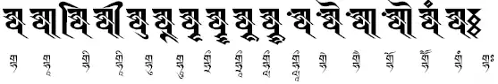 В тибетском слоге буква Га может проявляться в трёх структурных ипостасях: