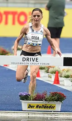 10 июля 2016 года Гега стала серебряным призёром чемпионата Европы в Амстердаме на дистанции 3000 метров с препятствиями, в очередной раз обновив национальный рекорд (9.28,52). За эту победу албанское правительство пообещало выплатить спортсменке премию в размере двух миллионов леков, а её тренеру Тауланту Стермаси — в размере 600 тысяч леков[12]. На церемонии открытия Олимпийских игр 2016 года в Рио-де-Жанейро была знаменосцем своей сборной.