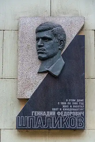 - ↑ Могилы знаменитостей. Геннадий Шпаликов. www.m-necropol.ru. Дата обращения: 22 марта 2022. Архивировано 8 декабря 2021 года.
