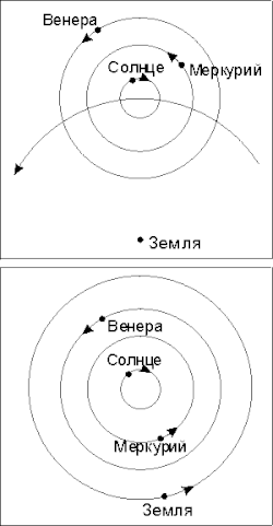 Наконец, Гераклид Понтийский, описывая круг Люцифера [Венеры], как и таковой Солнца, и давая двум кругам один центр и одну середину, показал, что Люцифер бывает иногда выше, иногда ниже Солнца. Он говорит, что положения Солнца, Луны, Люцифера и всех планет, где бы они ни находились, определяется линией, проходящей через центры Земли и данного небесного тела[3].