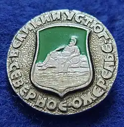 - ↑ СССР. Значок. Серия "Северное ожерелье". Герб Великого Устюга посл. треть XX в. collections.hermitage.ru. Дата обращения: 23 мая 2023.