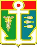 Герб имел следующее описание:«Щит рассечён зеленью и лазурью, глава червлёная. Поверх линий сечения положен серебряный якорь. В левом поле серебряный кадуцей, в правом три серебряные рыбы».