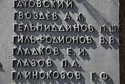 Мемориальная плита с именем В. В. Гиль-Родионова. Мемориальный комплекс «Прорыв», Ушачи