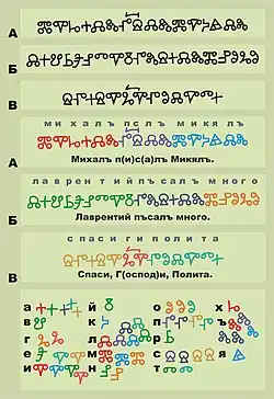 Глаго́лица — первый славянский алфавит. Создан в середине IX века византийским миссионером Кириллом для перевода богослужебных текстов с греческого языка на старославянский.
