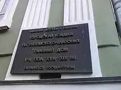 - Памятник истории и культуры "Городская усадьба П.Г. Вяземского-Глазовых" в 1-м Спасоналивковском переулке в Москве