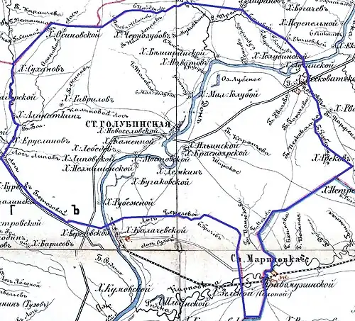 На 1897 год в Голубинскую станицу входили следующие населенные пункты[6]:
