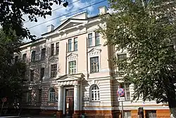 Внешний облик решён в стиле академической эклектики с использованием ордерных деталей, форм и принципов организации композиции. Главный фасад симметричен, акцентирован тремя ризалитами. Центральный ризалит имеет треугольный фронтон, прямоугольный аттик и входной портал. Междуоконные проёмы в уровне второго и третьего этажей обработаны пилястрами[4].