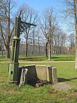Башня-руина и колодец были единственными сооружениями парка, сохранившимися во время войны[3].