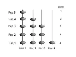- O(), где n — количество рядов — В реалистичной симуляции гравитации время, затрачиваемое на расчет падения бусин, прямо пропорционально квадратному корню из количества рядов.