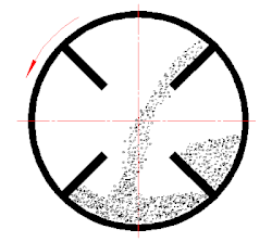 Одной из конструкций гравитационного бетоносмесителя является барабан, вращающийся вокруг горизонтальной или наклонной оси. В барабане имеются лопасти, которые во время вращения подхватывают, поднимают и сбрасывают вниз потоки смеси. Частота вращения гравитационных бетоносмесителей ограничена величиной 20 об/мин. Это обусловлено необходимостью предотвращения возникновения больши́х центробежных сил, препятствующих свободному перемешиванию компонентов смеси.[1]