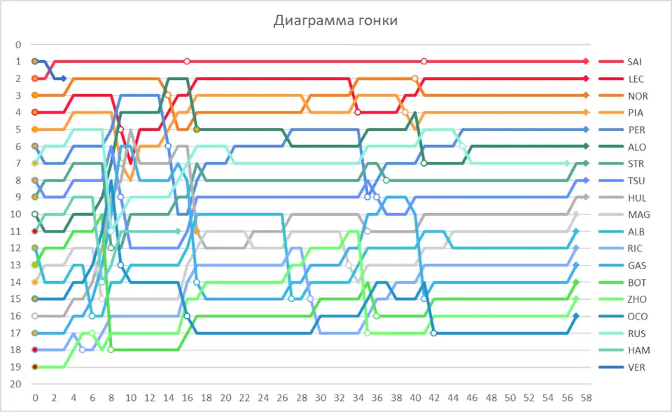 | 10 | 14 | ▲4 | 20 | Haas-Ferrari | P | 57 | +1 круг | 224,190 | 2 | MHH | 1 | |