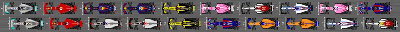 - ↑ - Фернандо Алонсо стартовал с пит-лейна после замены передней части болида и установки MGU-K.