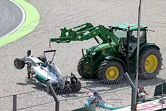 На 47-м круге машина Сутиля развернулась перед финишной прямой и заглохла. Адриан сообщил, что что-то не так с педалью тормоза. Автомобиль безопасности выпускать не стали, маршалы откатили машину.