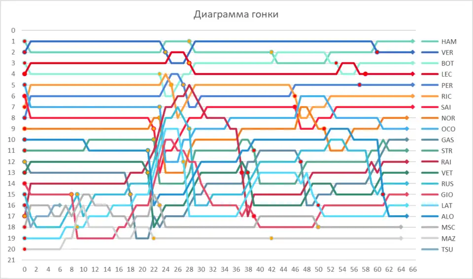 | 8 | 9 | ▲1 | 4 | McLaren-Mercedes | P | 65 | +1 круг | 194,840 | 2 | SMS | 4 | |