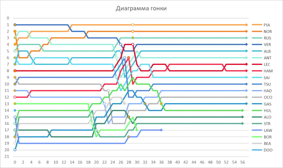 В гонке победил Оскар Пиастри из команды McLaren, вторым финишировал Ландо Норрис из McLaren, третьим — Джордж Расселл из Mercedes.