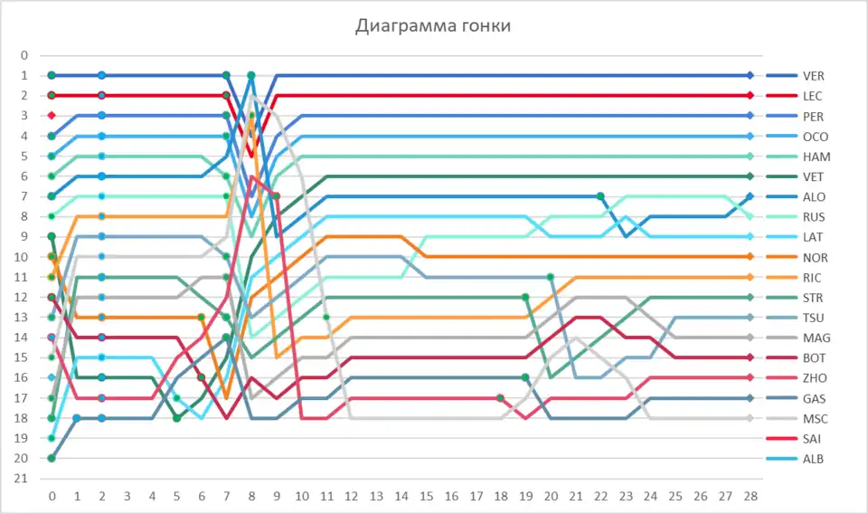 Гонку 12-й раз за сезон выиграл Макс Ферстаппен из команды Red Bull. Вторым стал Серхио Перес из Red Bull, третьим финишировал Шарль Леклер из Ferrari.