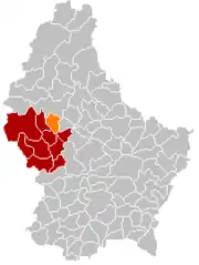 Оранжевый цвет - коммуна Гросбус, красный - кантон Реданж.