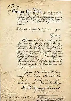 В июне 1916 года ротмистр 16-го драгунского Тверского полка, действовавшего в Персии составе 1-го Кавказского кавалерийского корпуса получил британский орден «За выдающиеся заслуги». Орден, которым по статуту награждали «за личную храбрость или командование, приведшее к выдающимся результатам», был получен Гуцунаевым за содействие британским войскам в Месопотамской компании, но за какой именно подвиг, до сих пор выяснить не удалось[1]. Исходя из данных справочника British Gallantry Awards (1981) предполагается, что на июнь 1917 он был единственным офицером Русской армии, имевшим подобную награду[3].