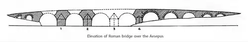 Руины римского моста через Гёнен исследовал англичанин Ф. У. Хэзлак в начале XX века. К его времени все четыре главные арки обрушились, полностью обрушилась третья опора слева, однако остальные опоры сохранились на всю высоту. Мост имеет ширину 5,6 м и длину около 158 м. Западный устой короткий и имеет две малые арки, восточный устой длиной 58 м опирается на пять арок уменьшающегося размера[26].