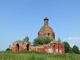 В 1819 году вместо деревянной церкви на средства прихожан устроен каменный храм. Престолов в церкви два: в холодной в честь Обновления храма Воскресения Христова, в приделе тёплом во имя преподобного Сергия Радонежского.[3]