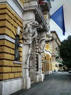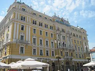 | Лицевой фасад дворца Адриа, смотрящий в сторону гавани порта Риека. | |||